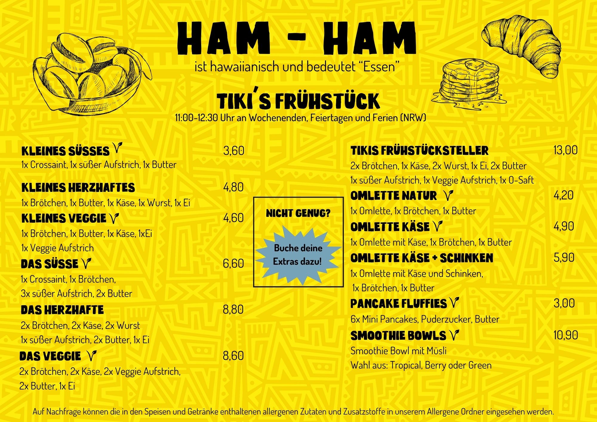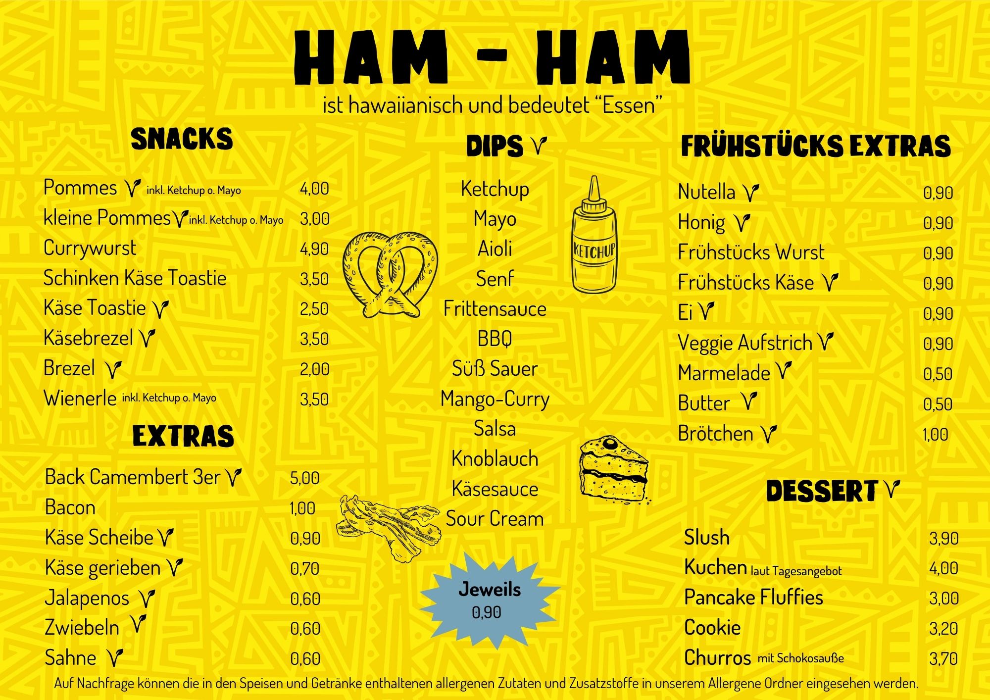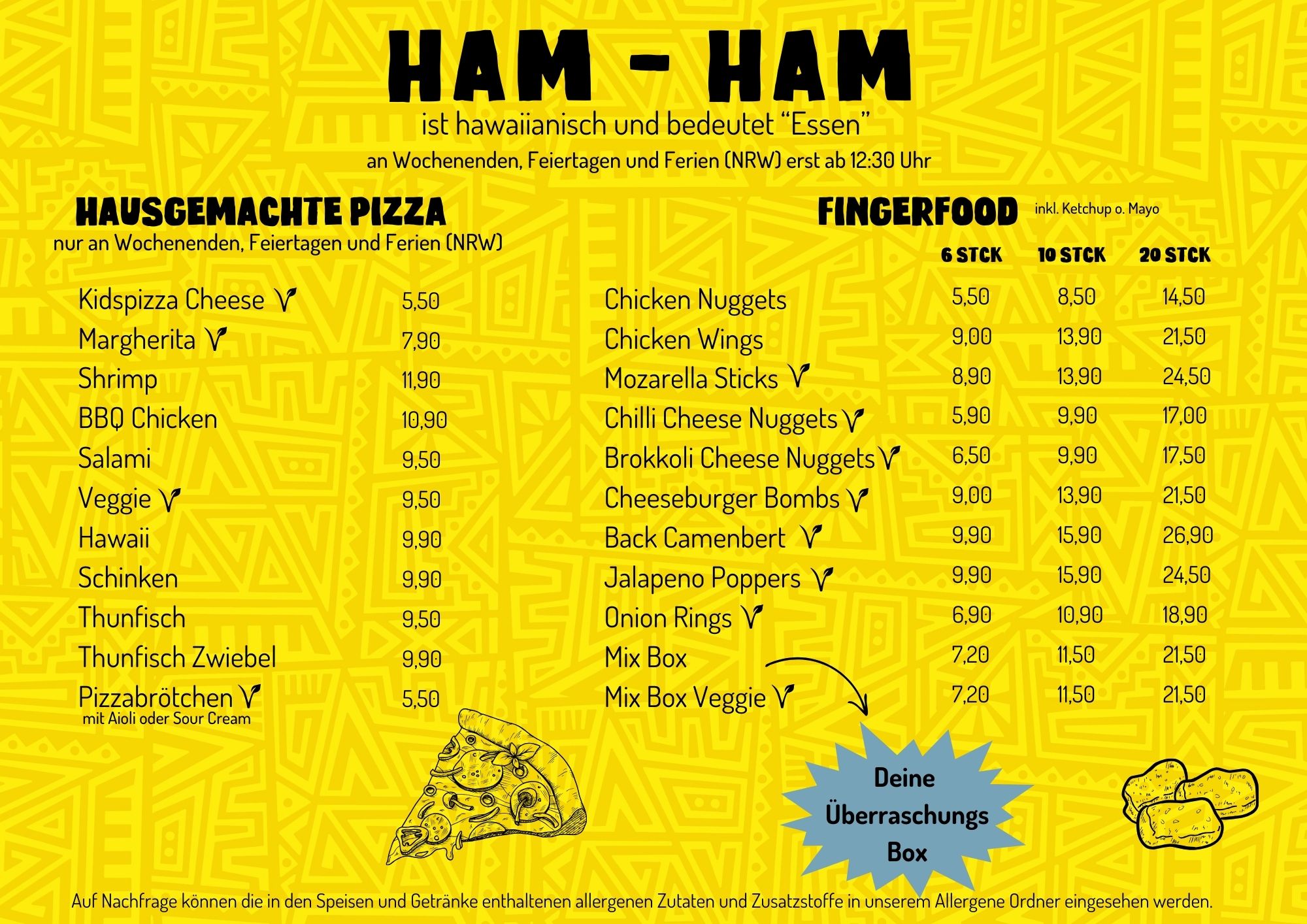 In unserer BAMBOO – BAR gibt es “HAMHAM“ (Ham Ham ist hawaiianisch und bedeutet Essen.) In unserer familienfreundlichen Bamboo-Bar versetzen wir Euch in Urlaubsstimmung. Durch unsere großen Panoramafenster habt Ihr Ausblick auf die Außenwelt, sowie auf “unser“ Meer mit Tiki-Insel.